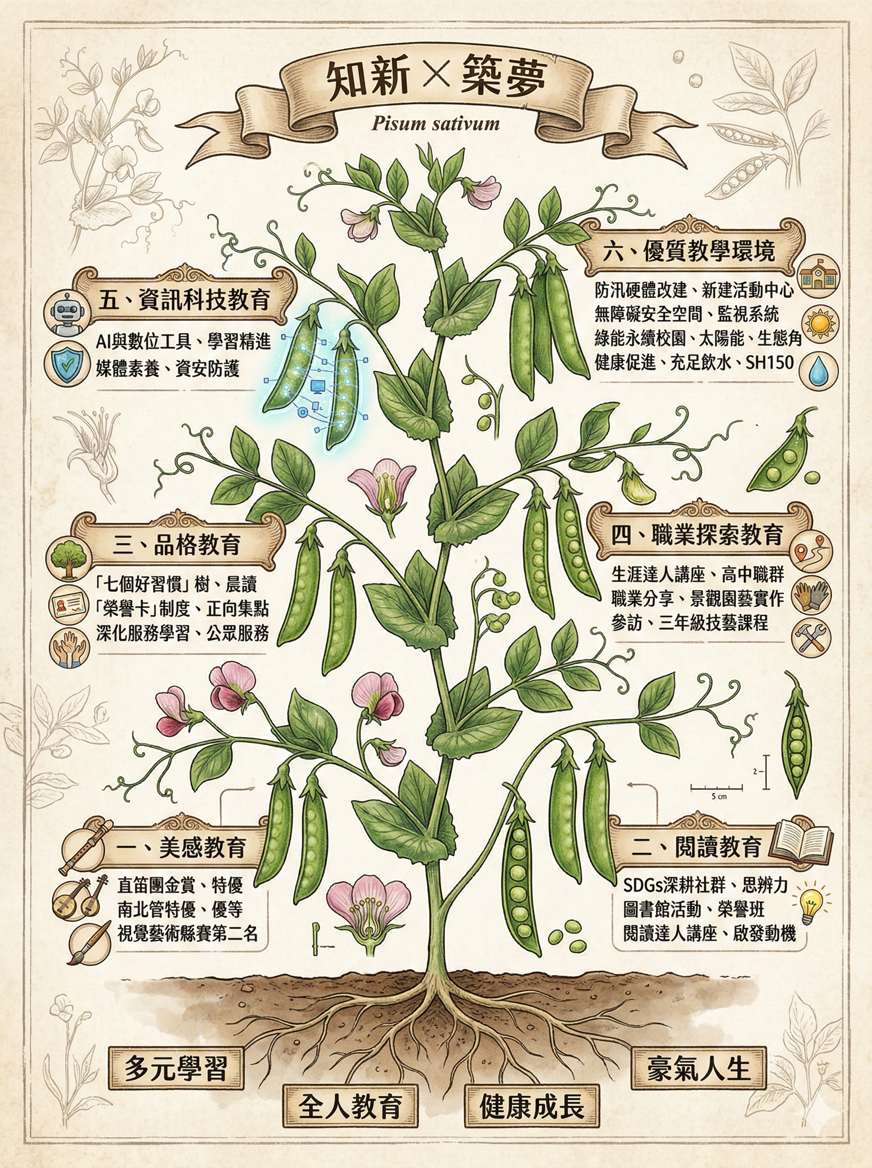本校大力扶植教師專業學習社群的運作,以同儕共學取代單打獨鬥。目前穩定運作的社群包含: • 本土語言社群:研發融入在地文化與生活情境的閩南語教材,並結合繪畫比賽提升學生學習興趣。 • 閱讀深耕社群:跨領域探討 SDGs 議題與科普文章,設計提問單,培養學生的批判性思考與長文閱讀能力。 • 減C提A教師學習社群:針對國文、英文、數學、自然、社會各科,定期分析歷屆會考試題,研究素養導向命題技巧。 |